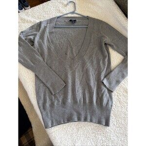 Gap Cashmere/Cotton Sweater V Neck Women M Gray Preppy Comfy