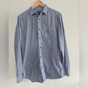 Stylish blue striped shirt perfect for any occasion. Comfortable and versatile for everyday wear.Elevate your casual wardrobe with this classic-fit Gap chambray button-down shirt. Crafted from 100% cotton, this shirt features a blue and white striped capsule design that's perfect for any occasion. The long sleeves and button-down collar add a touch of sophistication to this versatile piece, making it a must-have for any stylish man's collection.