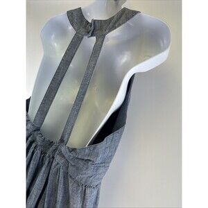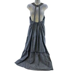 Gap Chambray Maxi Dress Deep V-Neck Halter Tiered Denim Blue Open Back Large