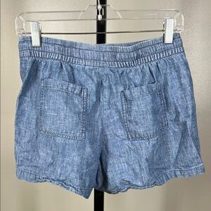 Stylish chambray shorts. Features a drawstring waist. Perfect for casual wear.