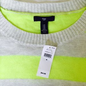 Chartreuse and light Grey striped Gap sweater. New with tags! 60% cotton, 40% polyester.