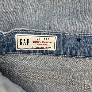 Gap Cheeky Straight High Rise Hidden Button Fly Distressed Jeans 32/14S