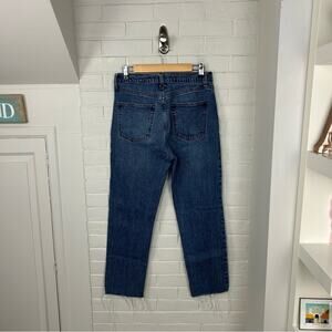 Good pre worn condition. 99% cotton. Gap Sky high cheeky straight jeans in a size 29 or 8. Regular sizing. Raw frayed hem. Some light manufactured distressing details. All sales final.