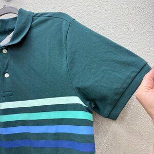 Gap Chest Stripe Teal 100% Cotton Short Sleeve Polo Shirt Mens size Medium NEW