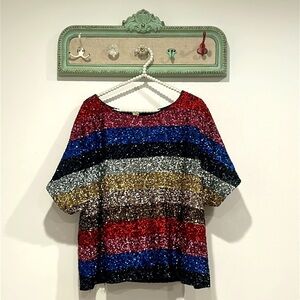 Gap Color Block Sequin Top Fully Lined Short Sleeve Boxy Look Wide L/XL shirt