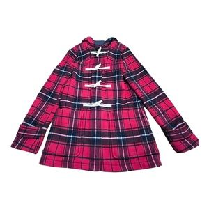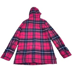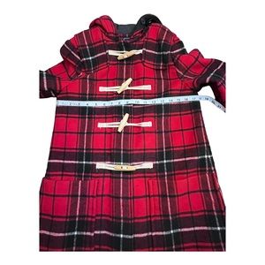 Gap Contrast Wool Blend Toggle Coat Red Black Plaid Women’s Size S Tall. Adjustable hood, fully lined and pockets. Zip front as well as toggle closure. Item in excellent pre-owned condition.