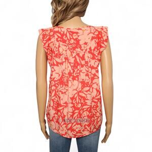Gap Coral Floral Flutter Sleeve V-Neck Blouse Lightweight Boho Summer Size XS