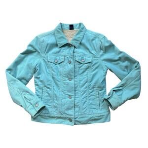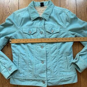 Gap Corduroy Trucker Jacket Women SZ M Aqua Blue Sherpa Cozy Fall Western