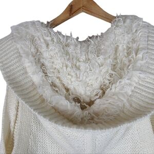 Gap Cream Hooded Sherpa lined Open Knit Vest Medium TALL with Pockets