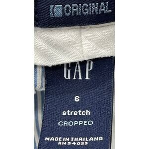 Gap Cropped Pants Women Size 6 Blue White Striped Stretch Pockets Cotton Blend
