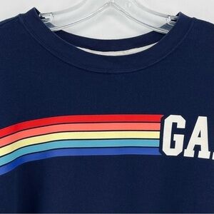 Gap Cropped Navy Rainbow Striped Graphic Sweatshirt, Women’s Size Small.