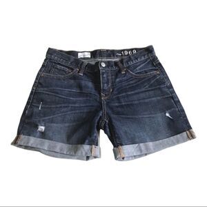 Gap Cuffed Distressed Denim Sexy Boyfriend Jean Shorts Blue Sz 25