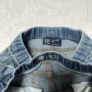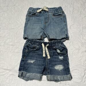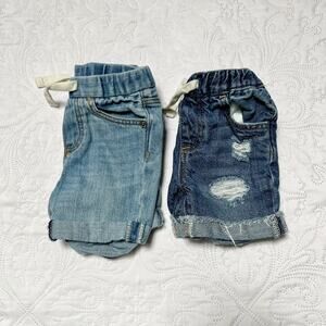 Gap pull on denim jean shorts bundle. Includes two pairs of shorts with cuffed bottoms. Lighter wash pair is play for stains. Distressed pair is very good condition. Size 6-12 months.