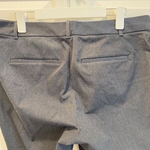 Gap business casual, curvy skinny ankle, dark gray pants. Size 16. Inseam is 26", hip to hip is approximately 21" or 42" total, waist is 18 1/2" left to right or approximately 37". Condition is very good. Hook, button and zipper closure. Made from cotton, polyester and spandex blend. Pants have stretch to them.