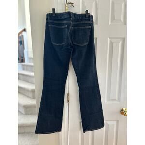 Excellent condition, these were mine but I never actually wore them so they are like new. Dark wash, bootcut, "curvy" fit (wider through hip and thigh).