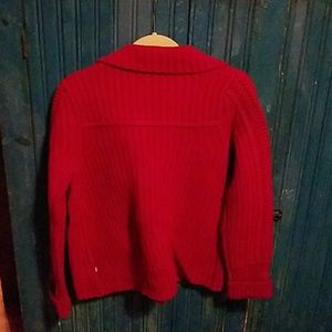 Deep Red Cardigan looks bright red in pic. Cardigan is Wool/ Cashmere blend. Has buttons. New without tags. No stains.