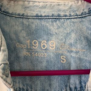 The Classic Gap Denim Button Down gets a fun twist with this acid wash, snap button flair.