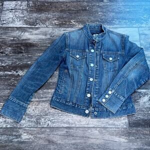 Gap Denim Jacket Womens XS Blue Jean Fitted Button Up Pockets Chore Y2K 80's