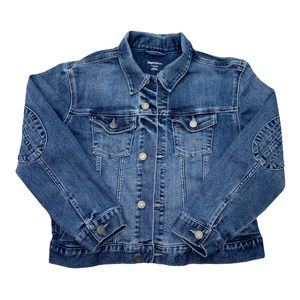 This is a Gap Kids Long Sleeve Denim Jacket with Elbow Patches Size L Husky