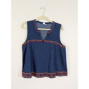 Gap Denim Multicolor Embroidered Sleeveless Jean Top Size L Women's Pocahontas