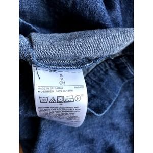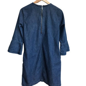 Great elevated basic from Gap-shift dress made of soft cotton denim, with bell sleeves and pockets. Good condition, no stains, rips or holes. Zips in the back, zipper works fine. 36 inches pit to pit, front has darts, 34 inches long, app'x knee length.
