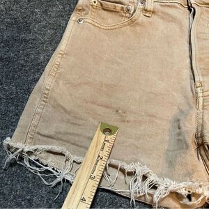 Gap Denim Shorts Tan Brown Button Fly Cut Off Fray