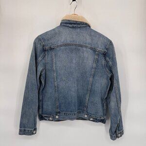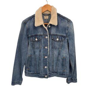 Gap Denim Trucker Jacket Womens Medium Blue Cotton Sherpa Trim Vintage