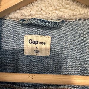 Gap Denim Trucker Boyfriend Womens Jacket Sherpa Size Large Cotton