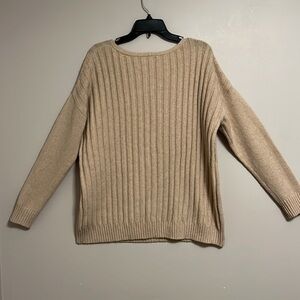 Pre owned good condition Feel cozy and look stylish this season with a chic v-neck ribbed sweater made from a wool blend fabric.