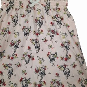 This dress is simply adorable! Adorned with Bambi and flowers, lightweight cotton, peach color, elastic waistband with faux drawstring, short cap sleeve, boat neckline. Perfect for your upcoming Disney World or Disneyland vacation!