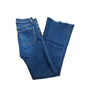 Gap Dk Indigo Blue Denim Authentic Flare High Rise Button Fly Raw Hem Jeans 26