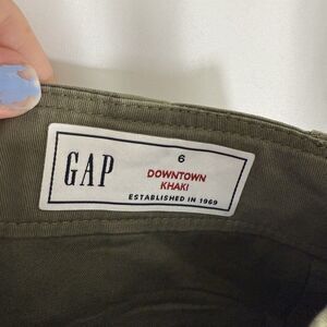 Gap Downtown Khaki Pants Women's 6 Green Mid Rise Pockets Flat Front Cotton Bl