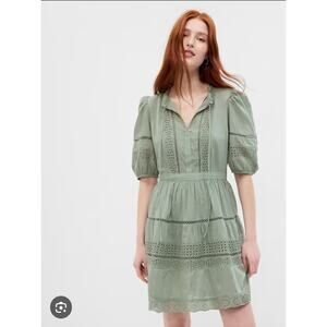 Gap Dress Med Sage Green Cotton Bohemian Chic Cottagecore Romantic Feminine