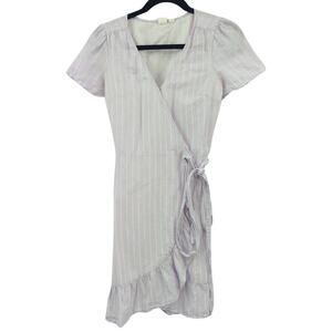 Tags: coastal cowgirl, minimalist, timeless classic, spring essential, summer staple, casual feminine, resortwear, neutral aesthetic, wrap tie dress, striped mini dress, light purple dress, ruffle hem outfit, spring brunch look, casual summer outfit, vacation dress, day-to-night style, lightweight linen blend, breathable fabric