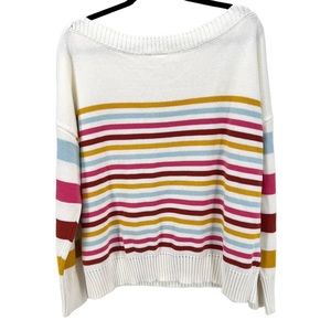 Gap Drop Shoulder Boatneck Multi Color Stripe Sweater