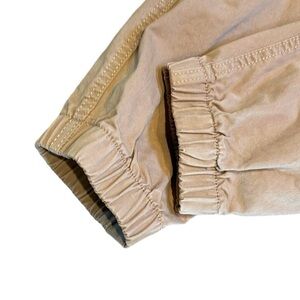* Elastic waist and leg openings, drawstring at waist, pockets in front and one in back