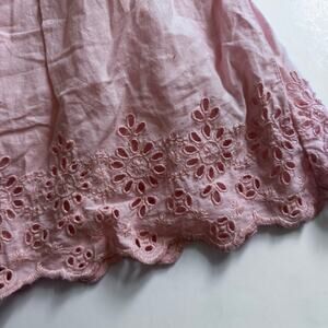 Pink Stripe top Cap sleeve Eyelet hem detail
