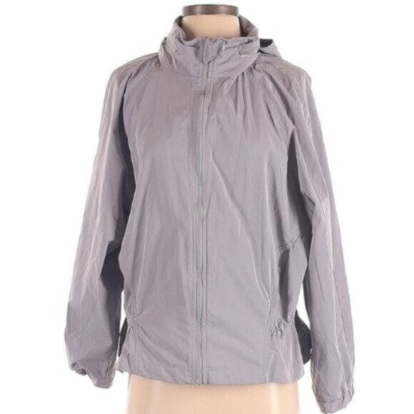 Women’s grey lightweight utility/cropped anorak jacket by Gap FIT, perfect for layering.