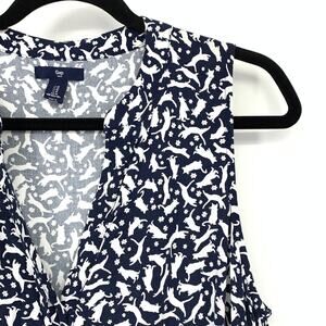 Gap Factory A-Line Dress Womens Size Medium Sleeveless Cat Print Navy White