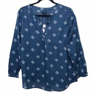 Gap Factory Blue Long Sleeve Snowflake Print Popover Blouse