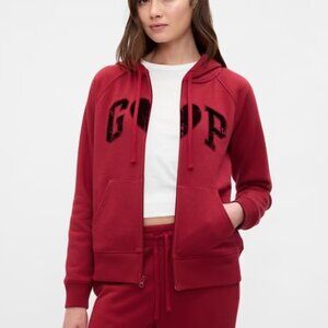Gap Factory Logo Zip Valentine's Day Red Hoodie Sled Heart L