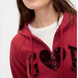 Gap Factory Logo Zip Valentine's Day Red Hoodie Sled Heart M