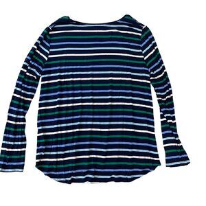 Gap Factory Luxe Long Sleeve Striped Tee Women's Size XL Navy Scoop Neck Rayon