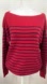 Nice thick knit cotton blend sweater from Gap. Deep red coloring with navy horizontal stripes. This can be worn long, but looks much nicer with a bit of a tuck due to its oversized shape. Pair it with jeans or go white for a more patriotic look!