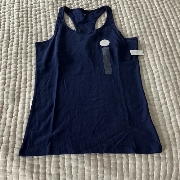 NWT Gap Factory Ribbed Racerback Built In Support Tank. Size Large. Navy Color.