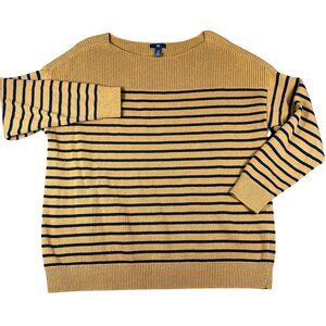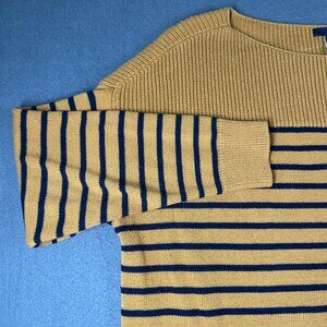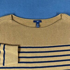 Gap Factory Women's XXL Miners Gold Blue Stripe Boatneck Sweater Long Sleeve. 55% Cotton, 40% Nylon, 5% Acrylic
