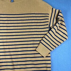 Gap Factory Womens XXL Miners Gold Blue Stripe Boatneck Sweater Long Sleeve