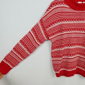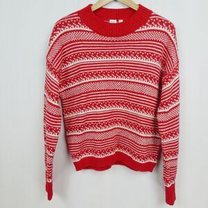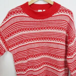 Gap Fair Isle Mock Neck Pullover Sweater Sz M Red Ivory Heavyweight Knit