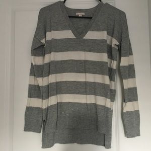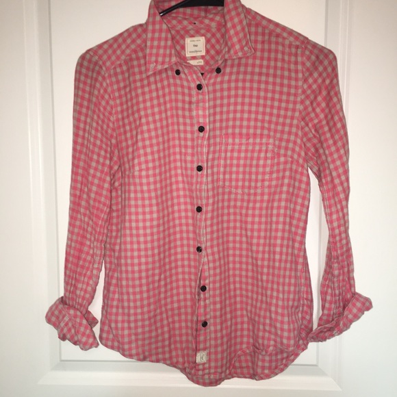 Gray and Pink Gingham shirt, size Xs price: $8 White and Gray striped sweater, super soft, size xs $8