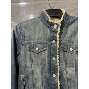 Gap Faux Fur Lined Denim Trucker Jacket Button Up Size Women’s Medium